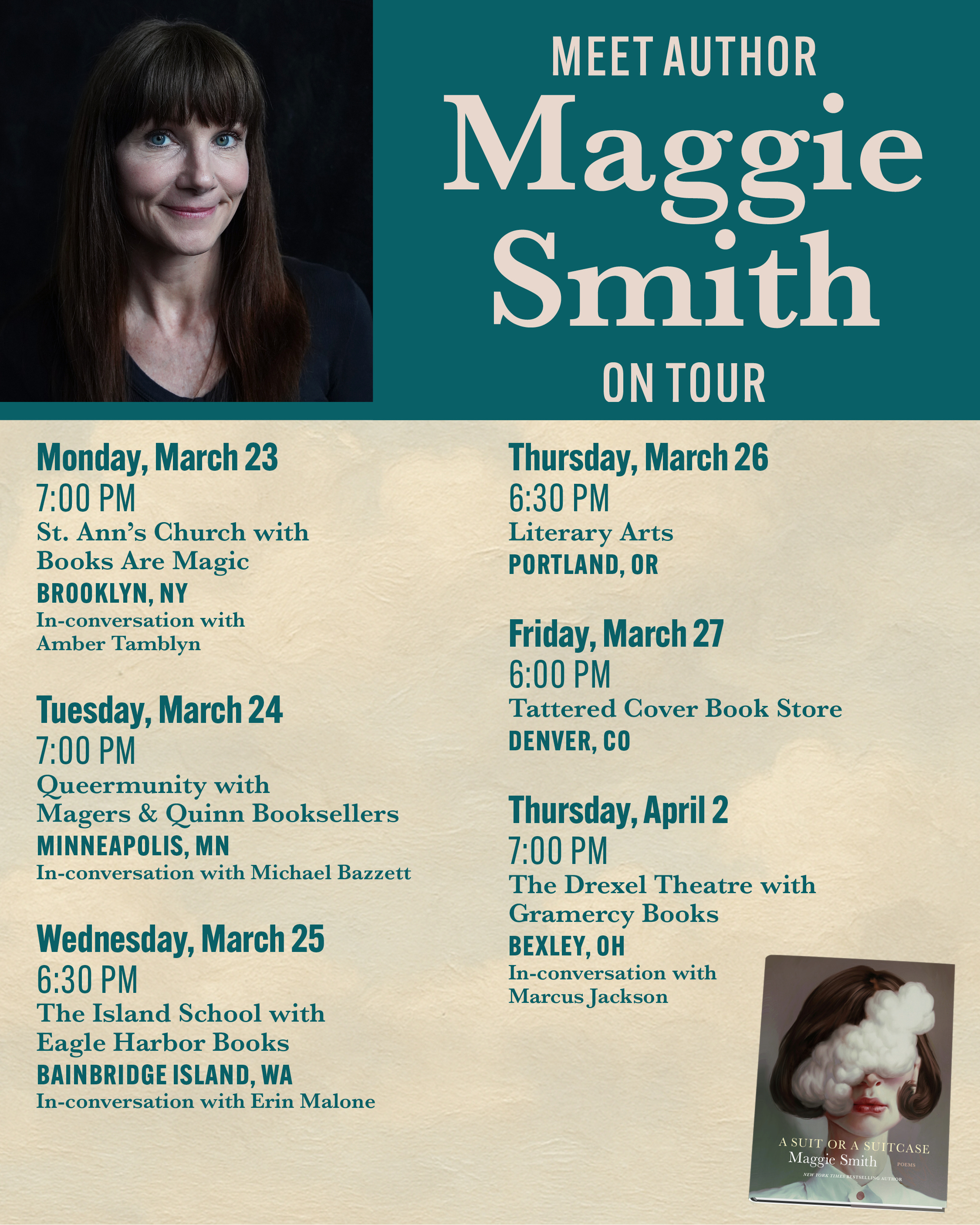 "The poems in A Suit or A Suitcase point us to larger considerations of the divine. Maggie Smith writes a poetry of profound belonging….