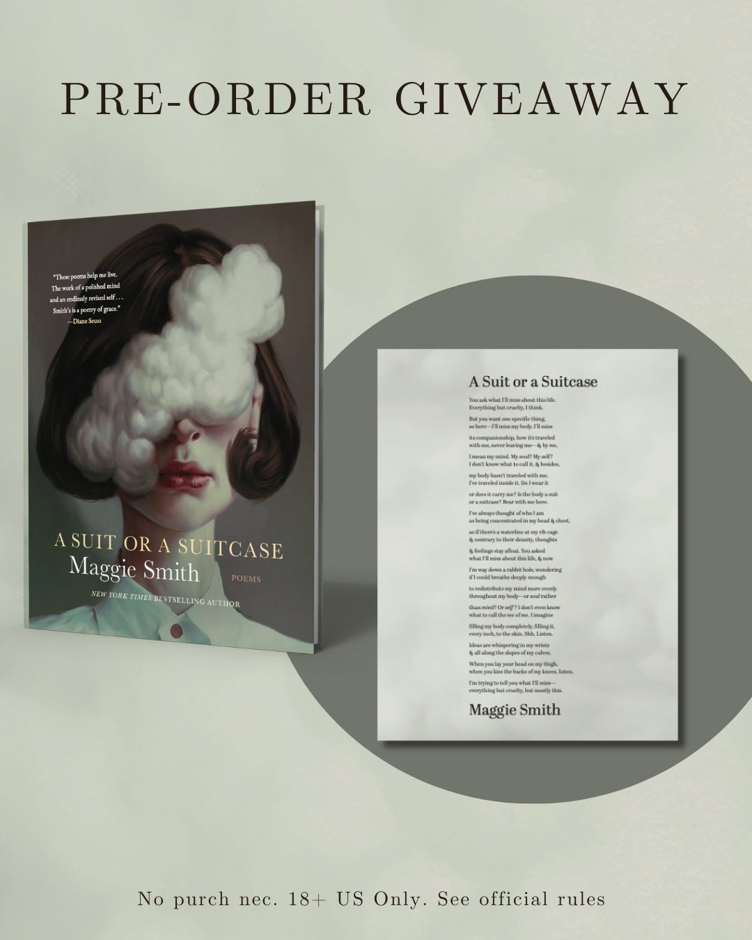 What else is good these days? My birthday is this Friday, and my fifth book of poems, A Suit or a Suitcase, is out next month! Pre-ordering the book would be a perfect birthday gift, and you’ll get a gift of your own, too, while supplies last—a custom broadside of the title poem. If you bought a book with a ticket for one of my book tour stops, you’re also eligible. Just enter your information here!